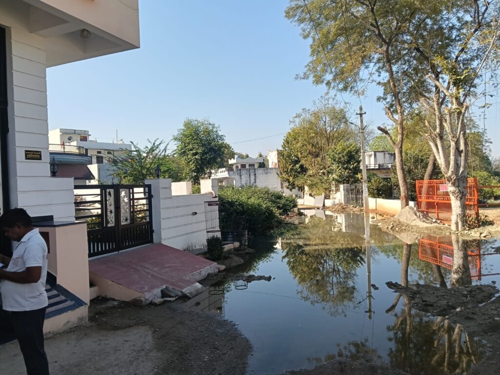 इस संबंध में क्षेत्र वासियों ने नगर पालिका अधिशासी अधिकारी को एक ज्ञापन सौंप कर बताया कि पिछले करीब एक सप्ताह से रास्ते में नालियों का गंदा पानी भरा है। नालियों का यह गंदा पानी कहीं वर्षों से कच्चे नाले के जरिए अन्यत्र जा रहा था। पिछले दिनों कच्चे नाले में भराव डालकर इस पानी को बंद कर दिया गया। पानी का निकास नहीं होने से मकानों के बाहर सड़क पर तलैया बन चुकी है। गंदा पानी न केवल बदबू दे रहा है अपितु इससे मच्छर भी पनप रहे हैं। जहरीले जीवों का खतरा पैदा हो गया है। लोगों का यहां से निकलना तक दूभर हो गया है। वाहनों,पशुओं को आने-जाने में काफी दिक्कत हो रही है। क्षेत्र वासियों ने जल्द ही गंदे पानी के निकास की व्यवस्था करवाने की मांग की है।