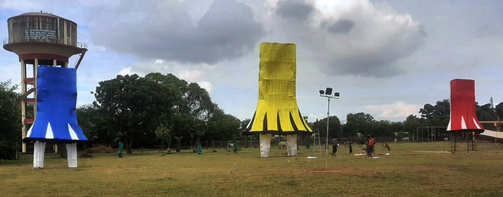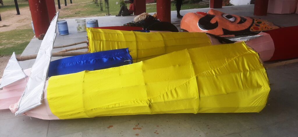 फतहनगर। दशहरा के अवसर पर प्रति वर्ष की भांति इस बार भी 51 फीट के रावण का दहन किया जाएगा। रावण के साथ ही कुंभकरण एवं मेघनाद के पुतलों का भी दहन किया जाएगा। कुंभकरण एवं मेघनाद के पुतले 41-41 फीट के होंगे। तीनों के पुतलों को तैयार करने का काम जारी है। इस काम में बड़ी सादड़ी के सद्दाम एवं परिवार लगा है। राजकीय उच्च माध्यमिक विद्यालय के मैदान पर पुतले खड़े कर दिए गए हैं। मुखौटे भी तैयार हो चुके हैं जबकि तीनों की भुजाएं तैयार की जा रही है। पुतला दहन के दौरान कोई इनके पास नहीं फटक पाए इसके लिए तारों से बैरीकेटिंग की गई है। दूर से लोग इन पुतलों के आतिशी दहन का आनंद उठा सकेंगे। पुतला दहन से पूर्व राम,लक्ष्मण,हनुमान एवं रावण की सेना की नगर में शोभायात्रा निकाली जाएगी। नगरपालिका के तत्वावधान में होने वाले उक्त आयोजन को लेकर व्यवस्थाएं चाक चैबंद की गई है। दहन से पूर्व समारोह होगा जहां प्रभु श्रीराम,लक्ष्मण एवं हनुमान की आरती की जाएगी। इसके बाद राम व रावण की सेनाओं के बीच प्रतीकात्मक युद्ध का मैदान पर मंचन किया जाएगा।