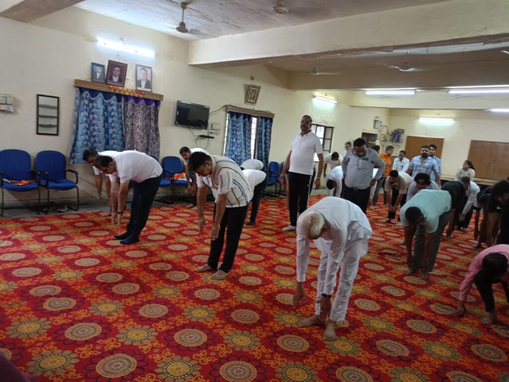 फतहनगर. मावली बार सभागार में अंतर्राष्ट्रीय योग दिवस अपर जिला एवं सेशन न्यायालय मावली एवं अभिभाषक संघ मावली के तत्वावधान में मनाया गया | अपर जिला एवं सेशन न्यायाधीश मावली राहुल चौधरी की अध्यक्षता में योग दिवस कार्यक्रम आयोजित हुआl आयोजन समिति में अधिवक्ता सुशील कुमार ओस्तवाल अध्यक्ष अभिभाषक संघ मावली ने अपर जिला एवं सेशन न्यायाधीश राहुल चौधरी का ऊपरना पहनाकर कर स्वागत किया एवं अतिरिक्त मुख्य न्यायाधीश मजिस्ट्रेट -1 प्रेम प्रकाश जीनगर का स्वागत वरिष्ठ अधिवक्ता सत्यनारायण चेचानी ने कियाl अतिरिक्त मुख्य न्यायाधीश मजिस्ट्रेट -2 मोहितांश सिंह पंवार का स्वागत उपाध्यक्ष संपत समोता ने किया एवं सिविल न्यायिक मजिस्ट्रेट जतिन परमार का स्वागत नितिन मंडोवरा ने कियाl अभिभाषक संघ के अध्यक्ष सुशील कुमार ओत्सवाल का स्वागत कोषाध्यक्ष सोहन सिंह राणावत ने किया। योग महोत्सव के सहप्रभारी अधिवक्ता नाथूलाल गर्ग ने बताया कि प्रभारी अधिवक्ता जगपाल सिंह बगावत , किशन लाल भील ने योग प्रार्थना से योग शुरू किया सर्वप्रथम प्राणायाम कपालभाति , अनुलोम विलोम, भ्रामरी, योगासन में ताड़ासन, वृक्षासन, हलासन, पवनमुक्तासन, सर्वांगासन, शीर्षासन एवं सूर्य नमस्कार करवाया कार्यक्रम की अध्यक्षता कर रहे अपर जिला एवं सेशन न्यायाधीश राहुल चौधरी ने 11वें अंतर्राष्ट्रीय योग दिवस महोत्सव पर योग जीवन के लिए कितने आवश्यक है उसकी उपयोगिता बारे में बताया एवं सभी को अपने जीवन में योग को अपनाने के लिए संकल्पित किया। योग महोत्सव में अभिभाषक संघ मावली के अध्यक्ष सुशील कुमार ओत्सवाल अपर लोक अभियोजक दिनेश पालीवाल, विधिक सहायता के तालुका अध्यक्ष कन्हैया लाल , सत्यनारायण चेचानी, उपाध्यक्ष संपत समोता, कोषाध्यक्ष सोहन सिंह राणावत, अधिवक्ता मदन नागदा आशीष शर्मा, पूर्व अध्यक्ष नितिन मंडोवरा, जयेश मारवाड़ी, विष्णु कुमार मंडोवरा, तुलसीराम डांगी, अशोक सेन, नरेंद्र वीरवाल, भावेश टेलर, विनोद पुरी गोस्वामी एवं समस्त न्यायिक कर्मचारी गण वी विद्वान अधिवक्ता गण ने योग दिवस पर योग प्राणायाम कर संकल्प लिया।