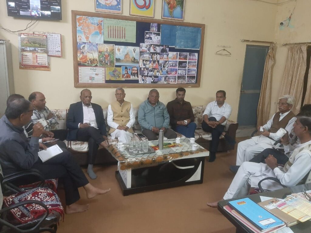 फतहनगर। विद्यानिकेतन विद्यालय की प्रबंध समिति की बैठक रविवार को संरक्षक मनोहर लाल कावड़िया की उपस्थिति एवं समिति अध्यक्ष कैलाश चंद्र अग्रवाल की अध्यक्षता में आयोजित की गई। बैठक में समिति के पदाधिकारी व सदस्यों का प्रधानाध्यापक सुरेश चंद्र आमेटा ने शब्दों द्वारा स्वागत किया। परीक्षा परिणाम उन्नयन पर विशेष जोर दिया गया। अगले सत्र में 11वीं में कृषि संकाय व कला संकाय प्रारंभ करने को लेकर सहमति व्यक्त की गई। इसके अलावा नर्सरी, एलकेजी, यूकेजी तथा प्रथम कक्षा से ही अंग्रेजी माध्यम शिक्षण की व्यवस्था शुरू करने पर सहमति व्यक्त की। विद्यालय के भौतिक विकास को लेकर भी योजना बनी तथा क्रियान्विति को लेकर विचार विमर्श किया गया। बैठक में अशोक कटारिया, प्रभुलाल जैन,मनोज कुमार समदानी, शुभम अग्रवाल, जयप्रकाश बंसल, भगवान लाल माली, शंकरलाल चावड़ा, गजेंद्र सिंह राजपूत, प्राथमिक शाला संस्था प्रधान तुलसीराम लोहार आदि उपस्थित थे।