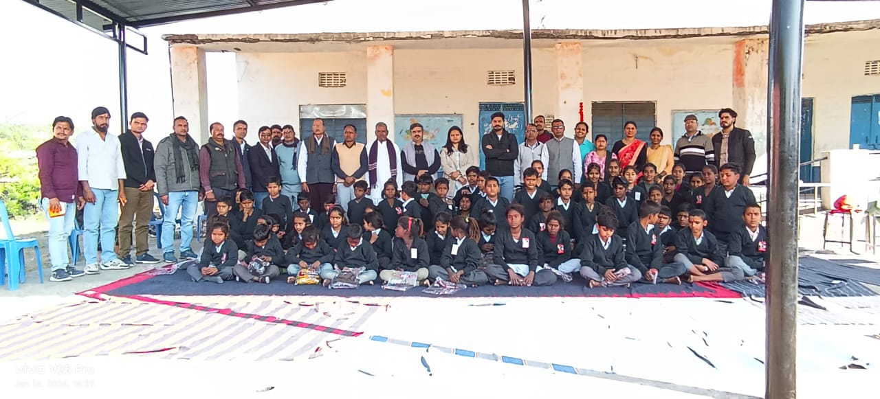 तिलक लगाकर, उपरणा ओढ़ाकर, मेवाड़ी पाघ पहनाकर स्वागत अभिनंदन किया। राजस्थान शिक्षक संघ राष्ट्रीय के उपशाखा उपाध्यक्ष पुरुषोत्तम कुमार शर्मा के प्रयासों से विद्यार्थियों को लाभान्वित किया गया। उदयपुर के भामाशाह राजेंद्र सिंह झाला व उनके सहयोगी सदस्यों द्वारा सभी छात्र-छात्राओं को स्वेटर वितरणकिये गए। वितरण कार्यक्रम के पश्चात भामाशाहों द्वारा उपस्थित समस्त संभागियों , अतिथियों, विद्यार्थियों ने एक साथ कृष्ण भोग ग्रहण किया। समारोह में मुख्य ब्लॉक शिक्षा अधिकारी सुखलाल गुर्जर, राजस्थान शिक्षक संघ राष्ट्रीय जिला माध्यमिक उपाध्यक्ष चंद्रशेखर चौधरी ,उप शाखा मंत्री भूपेंद्र पाठक ,संगठन मंत्री मदन लाल श्रीमाली ,पीईईओ से कालू लाल जाट व पीईईओ प्रतिनिधि लोकेश आमेटा की उपस्थिति रही। संस्था प्रधान भेरू लाल धोबी ने उपस्थित समस्त अतिथियों का आभार व्यक्त किया। संस्था प्रधान भेरुलाल धोबी ,रवि यादव, विद्यार्थियों,ग्रामवासियों, अभिभावकों की उपस्थिति रही।