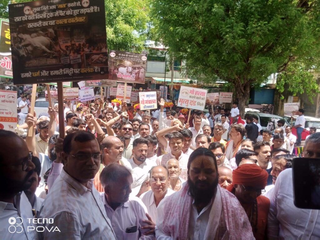 फतहनगर। पूरे भारत वर्ष में चल रहे गौ सम्मान आव्हान अभियान के तहत मंगलवार को मावली तहसील क्षेत्र में एक भव्य संकीर्तन रैली का आयोजन किया गया। इस दौरान तहसील के विभिन्न गांवों से बड़ी संख्या में गौ प्रेमी, गौभक्त एवं सनातन धर्मावलंबी महिला-पुरुष पुराना बस स्टैंड मावली पर एकत्रित हुए।यहां से सभी श्रद्धालु संकीर्तन करते हुए रैली के रूप में तहसील कार्यालय पहुंचे, जहां तहसील अधिकारी को माननीय राष्ट्रपति, प्रधानमंत्री, राज्यपाल एवं मुख्यमंत्री के नाम संबोधित ज्ञापन सौंपा गया। ज्ञापन में प्रमुख रूप से गौ माता को राष्ट्र माता का दर्जा देने, गौवंश की सुरक्षा के लिए केंद्रीय कानून बनाने तथा पूरे देश में गौ हत्या पर पूर्ण प्रतिबंध लगाने की मांग रखी गई।रैली की विशेषता यह रही कि सभी प्रार्थना पत्रों को लाल कपड़े में बांधकर गौभक्तों ने अपने सिर पर धारण कर श्रद्धा भाव के साथ यात्रा की। इस दौरान साक्षात गौ माता, नंदी बाबा एवं भगवान की सजीव झांकियां आकर्षण का केंद्र रहीं। ठाकुर जी की बेवाण ने भी श्रद्धालुओं का मन मोह लिया।कार्यक्रम में संतजन, वयोवृद्ध, मातृशक्ति एवं युवा वर्ग ने उत्साहपूर्वक भाग लिया और पूरे मार्ग में भक्ति गीतों व कीर्तन से माहौल भक्तिमय बना दिया। रैली में विभिन्न हिंदू संगठनों का भी सक्रिय सहयोग रहा।कार्यक्रम के अंत में आयोजकों ने सभी उपस्थित जनों का आभार व्यक्त करते हुए गौ संरक्षण के इस अभियान को निरंतर आगे बढ़ाने का संकल्प लिया।