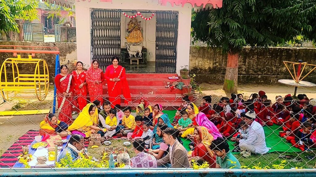 विद्या निकेतन विद्यालय में शुक्रवार को बसंत पंचमी एवं मां सरस्वती के अवतरण दिवस के शुभ अवसर पर विद्यारंभ संस्कार, सरस्वती पूजन एवं पाटी पूजन का कार्यक्रम आयोजित किया गया। इस कार्यक्रम में आगामी सत्र में नवीन प्रवेश लेने वाले तीन से पांच वर्ष की आयु के अट्ठारह बालक- बालिकाओं ने अपने माता-पिता के साथ कार्यक्रम में भाग लिया। वैदिक मंत्रोच्चार,तिलक,मौली बंधन,हवनाहुति,पोथी पूजन व पाटी पर ऊं,श्री, स्वस्तिक के लेखन के साथ ही नवीन बालक- बालिकाओं का स्वागत एवं विद्या आरंभ संस्कार किया गया। पूर्णाहुति,आरती एवं प्रसाद वितरण के बाद कार्यक्रम का समापन हुआ। इस अवसर संकुल प्रभारी गजेंद्रसिंह राजपूत, भाजयुमो मंडल अध्यक्ष गोवर्धन सोनी, विद्यालय स्टाफ सहित अभिभावकगण एवं मातृशक्ति उपस्थित रहे। प्रधानाध्यापक तुलसीराम लोहार ने नवीन बालक-बालिकाओं एवं जोड़े सहित पधारे अभिभावकों का स्वागत,अभिनंदन एवं आभार व्यक्त किया।