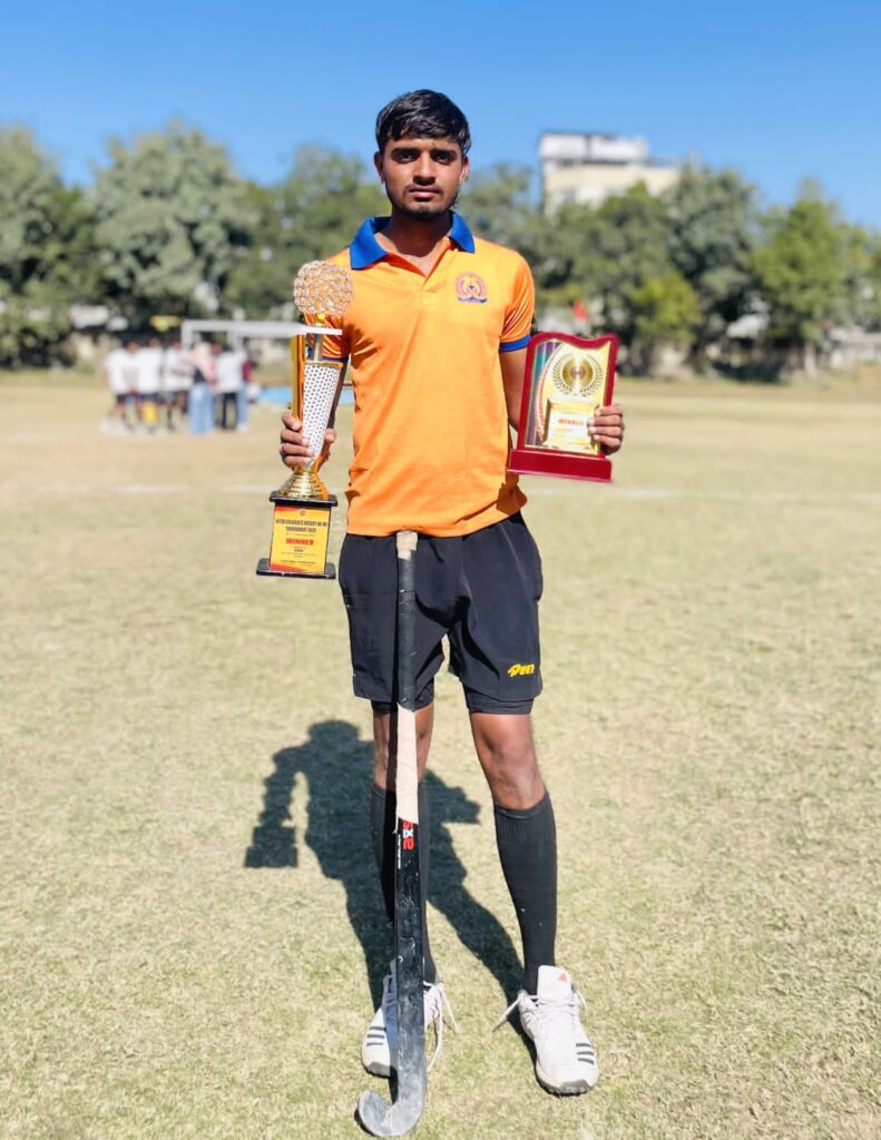 फतहनगर। मावली तहसील के रख्यावल गांव में हर्ष और गर्व का माहौल है, क्योंकि गांव के बेटे ने राष्ट्रीय स्तर पर अपनी पहचान बनाई है। ऐश्वर्या कॉलेज ऑफ एजुकेशन संस्थान उदयपुर के छात्र नारायण लाल डांगी उर्फ गणपत डांगी को ऑल इंडिया इंटर यूनिवर्सिटी वेस्ट जोन हॉकी पुरुष प्रतियोगिता के लिए चयनित किया गया है। यह प्रतिष्ठित प्रतियोगिता 12 जनवरी 2026 से 17 जनवरी 2026 तक एल. एन. सी. टी. यूनिवर्सिटी भोपाल, मध्यप्रदेश में आयोजित की जाएगी। रख्यावल के पूर्व नेशनल हॉकी खिलाड़ी जगपाल सिंह बगावत ने इस अवसर पर बताया कि पूरे गांव में गर्व और खुशी का वातावरण है। उन्होंने कहा कि इस युवा खिलाडी ने पूरे गांव को गौरवान्वित किया है और इनकी उपलब्धि प्रेरणा का स्रोत बन रही है। उन्होंने नारायण डांगी को बधाई देते हुए उनके अच्छे प्रदर्शन और प्रतियोगिता में विजयी होने की शुभकामनाएं दी।प्रतियोगिता में चयनित नारायण डांगी 9 जनवरी को प्रतियोगिता में भाग लेने के लिए भोपाल के लिए रवाना होंगे। इस कदम से न केवल उनकी व्यक्तिगत प्रतिभा का सम्मान हुआ है, बल्कि यह पूरे रख्यावल गांव के लिए गर्व का क्षण भी है। इस उपलब्धि से यह स्पष्ट होता है कि खेलों में युवाओं की भागीदारी और सफलता लगातार बढ़ रही है, जो देश के खेल विकास में महत्वपूर्ण योगदान दे रही है। इस ऐतिहासिक चयन ने न केवल खिलाडी के परिवार और शिक्षकों को उत्साहित किया है, बल्कि पूरे समुदाय में खेलों के प्रति जागरूकता और उत्साह को भी बढ़ाया है। नारायण डांगी की मेहनत और समर्पण ने साबित किया है कि उचित प्रशिक्षण और संघर्ष से कोई भी युवा राष्ट्रीय स्तर पर चमक सकता है। इससे पूर्व भी रख्यावल गांव की 5 बालिकायें रविना, योगिता, बेनकी , साक्षी और संगीता ऑल इंडिया इंटर यूनिवर्सिटी वेस्ट जोन हॉकी महिला प्रतियोगिता पुणे में भाग ले चुकी हैं।